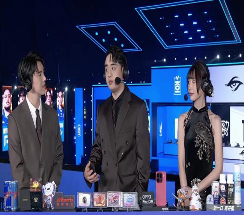 S15瑞士轮Round4首场解说席:黑旗袍瞳夕展现直角肩,妆容好美