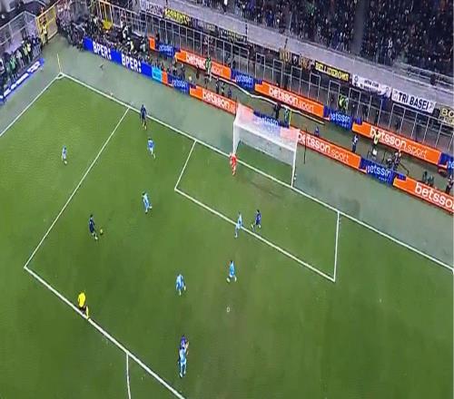 伤停补时第3分钟,国米险些绝杀致胜。