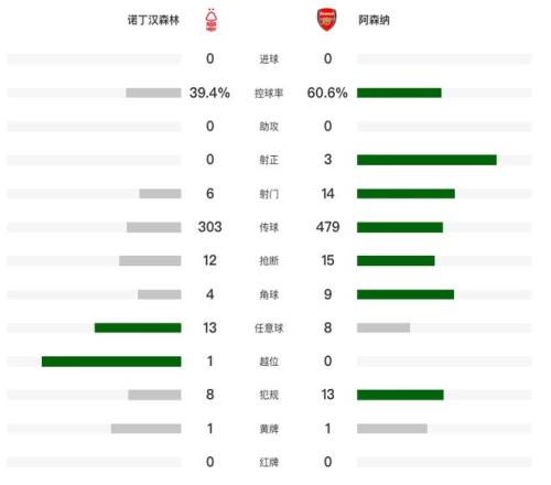 在北京时间1月18日结束的英超第22轮一场焦点战中,领头羊阿森纳在客场0-0战平诺丁汉森林。上半场,双方0射正,马丁内利失良机,哲凯赖什失单刀。下半场,萨卡、赖斯、梅里诺先后与进球失之交臂。最终,双方互交白卷。