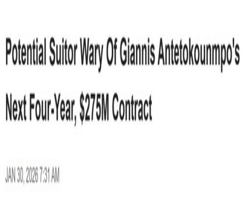 北京时间1月30日,美媒RealGM撰文解析字母哥的交易问题,提到了一个关键的变数,那就是他潜在的巨额续约。以下是相关解析——