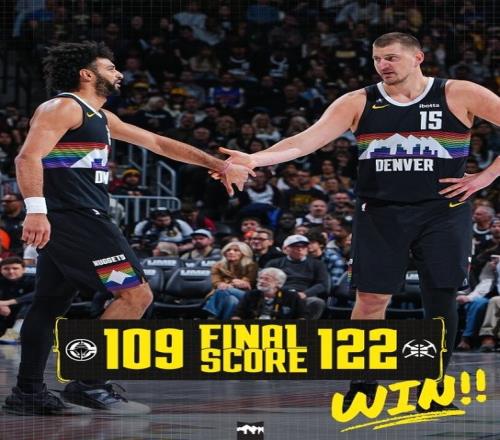 赛后球队发布赢球海报,约基奇和穆雷二人组登上封面。