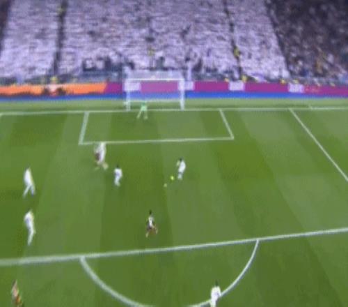 第15分钟,卜拉欣左路分球,维尼修斯禁区内连续变向,一对三完成摆脱,随即兜射轰出世界波,皇马1-0领先,熊皇终于打破13场西甲进球荒。